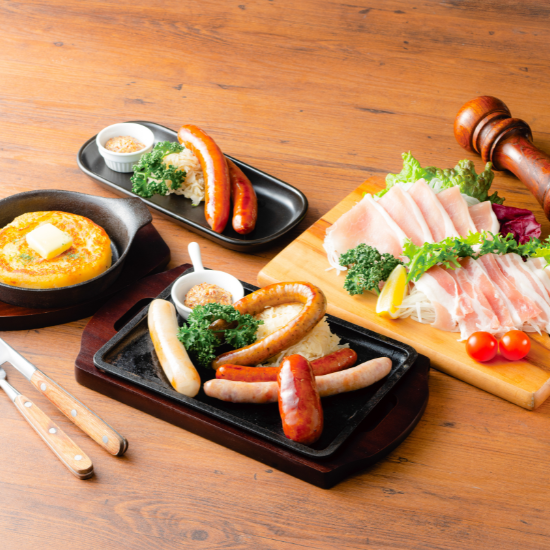 ビヤホールの定番商品「ソーセージ」と「生ハム」をセットにしました。