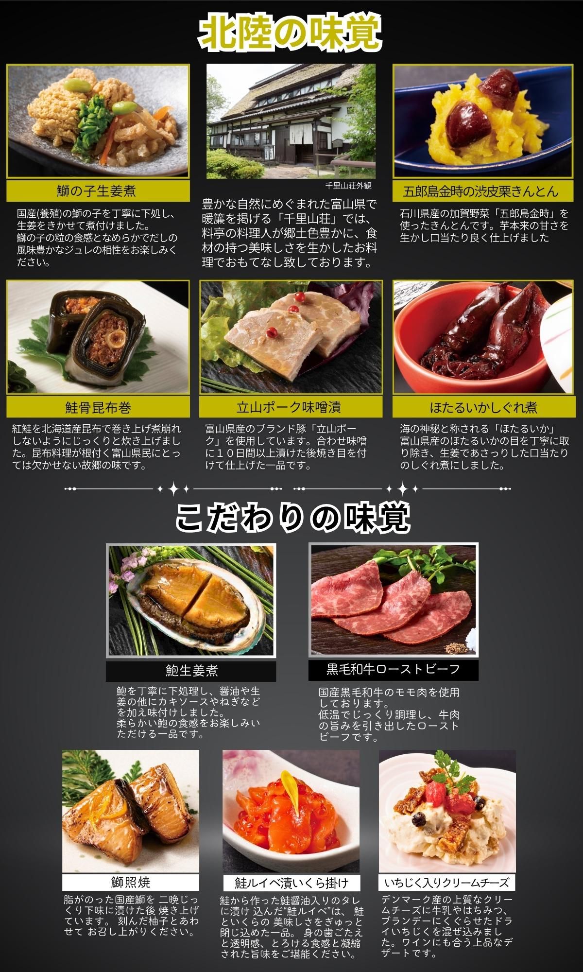 【立山ポーク味噌漬】豚肉(国産)、米みそ、清酒、ピンクペッパー、本みりん、醤油、砂糖、ゼラチン、植物油脂/pH調整剤、(一部に小麦・大豆・豚肉・ゼラチンを含む)